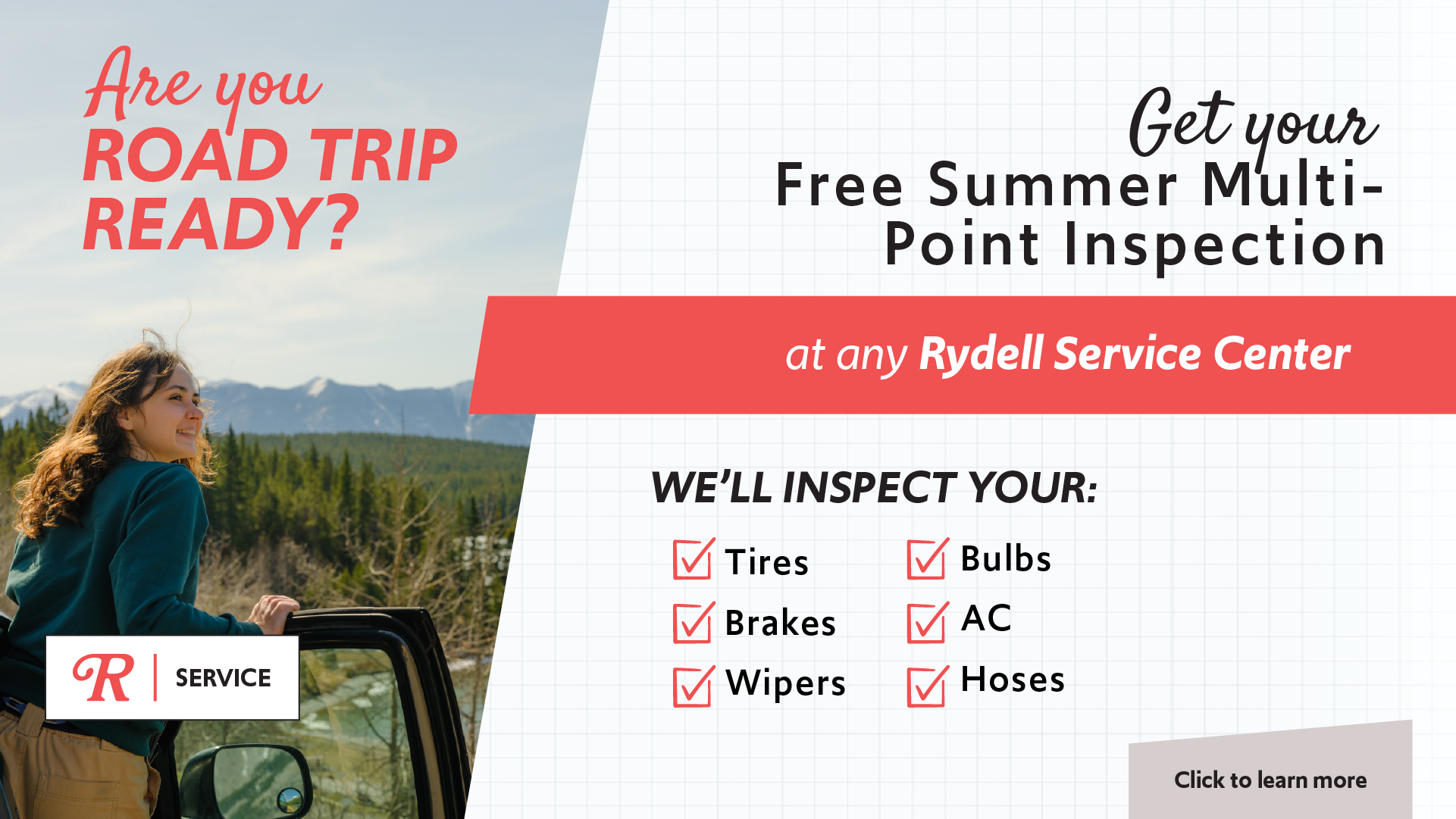 Get ready for your Summer Adventure with a FREE Multi-Point Vehicle Inspection.
