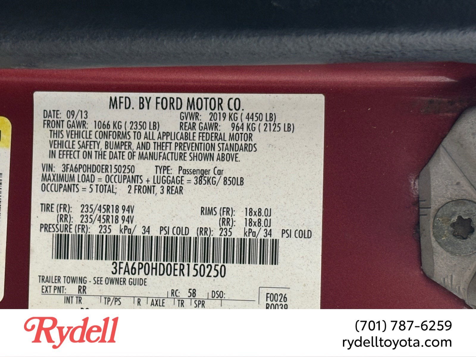 - Vehicle Name: Ford Fusion