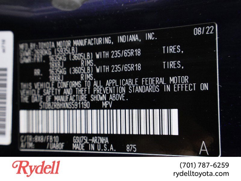 - Vehicle Name: Toyota Highlander
